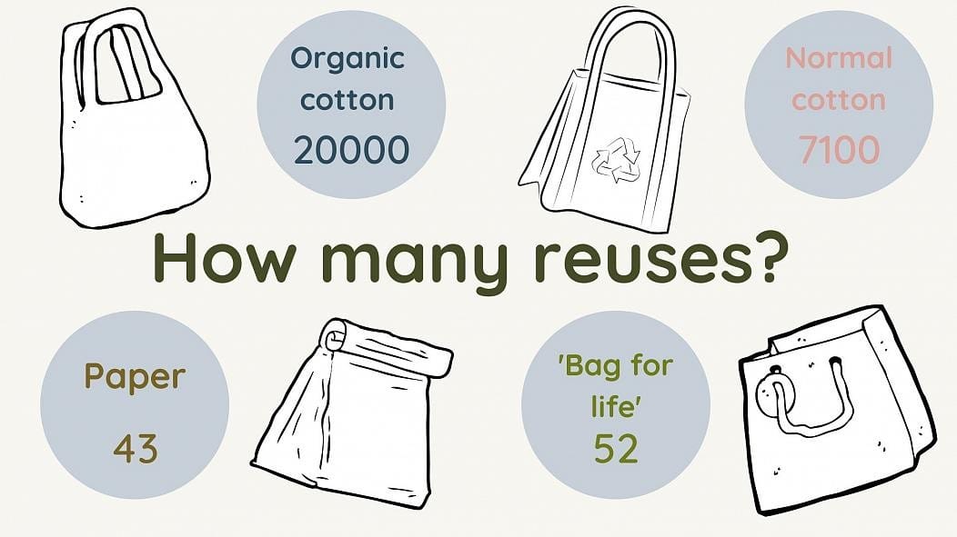 - Organic Cotton Tote Bags: Despite being reusable, studies have shown that an organic cotton tote bag needs to be used 20,000 times to offset its production impact compared to single-use plastic bags, due to the resource-intensive nature of cotton farming.